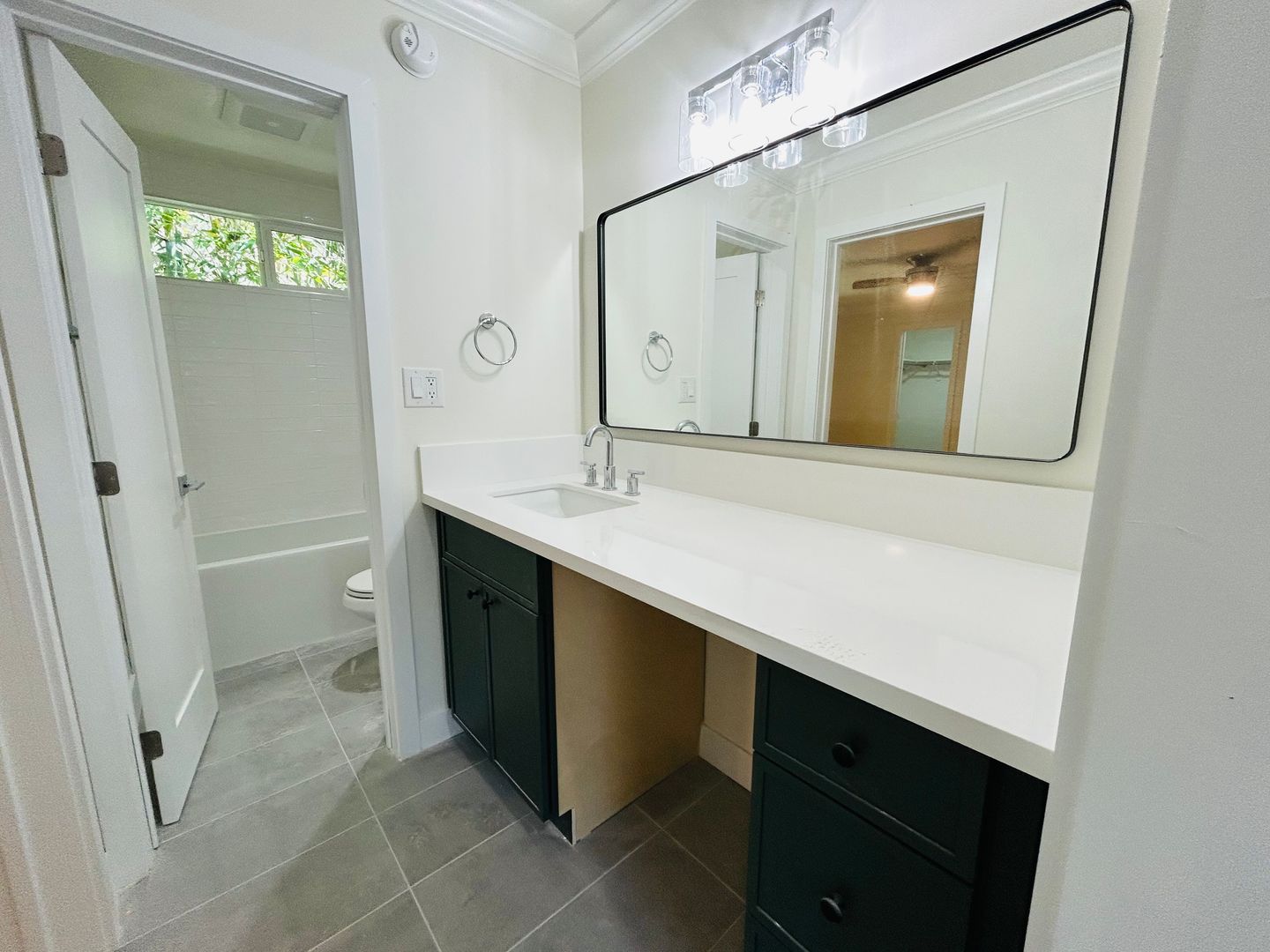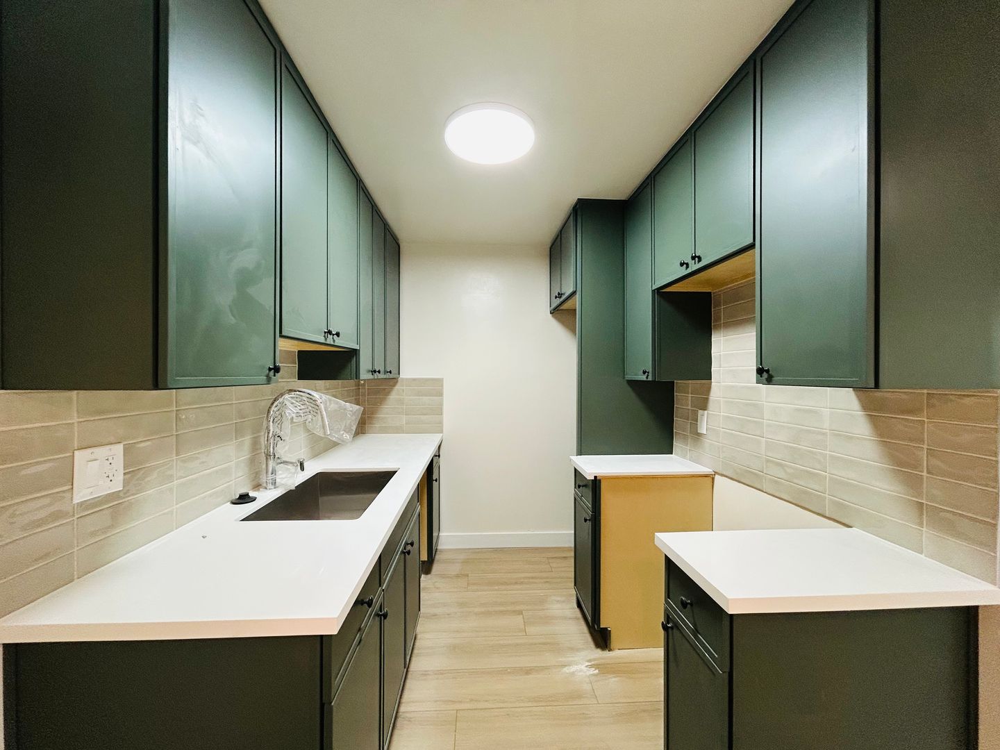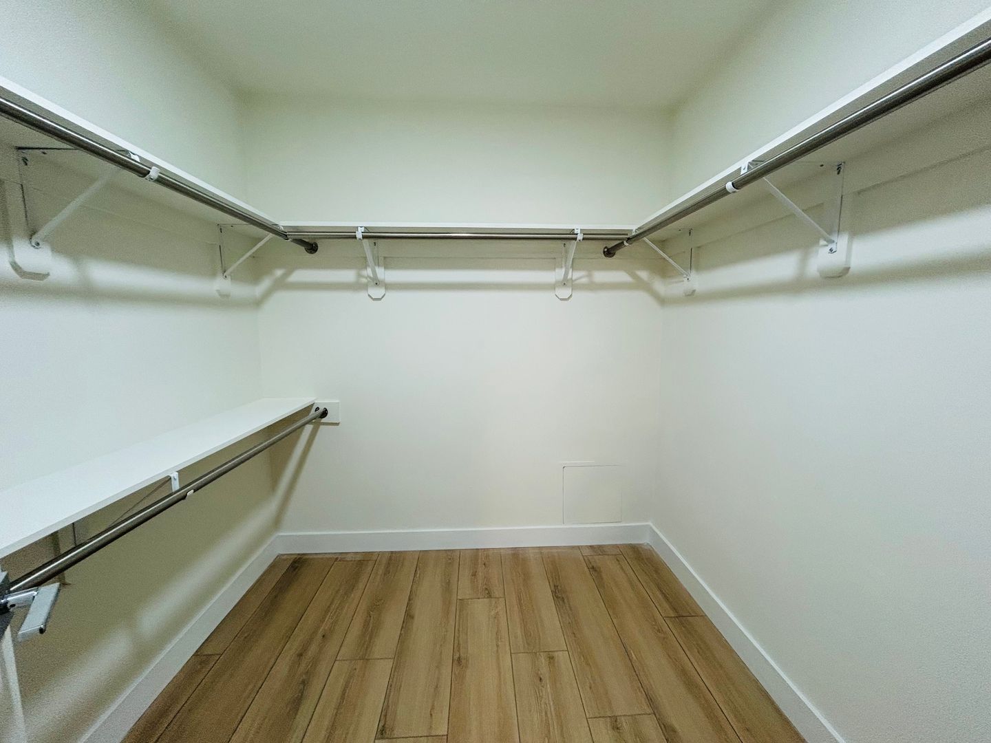 Centrally located between Westwood Village and Santa Monica, This spacious top-floor one-bedroom apartment home features in unit washer/dryer, air conditioning, wood-style vinyl plank flooring, stainless steel appliances, quartz countertops, and an oversized stainless steel sink. Its living room has an open layout with balcony access, creating an inviting environment with natural sunlight. The bedroom includes a ceiling fan and mirrored closet doors. The bathroom has an abundance of storage for linens and toiletries.