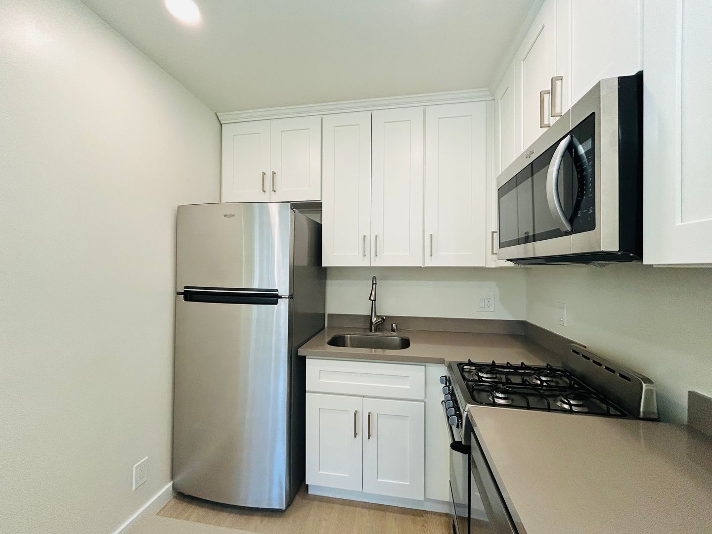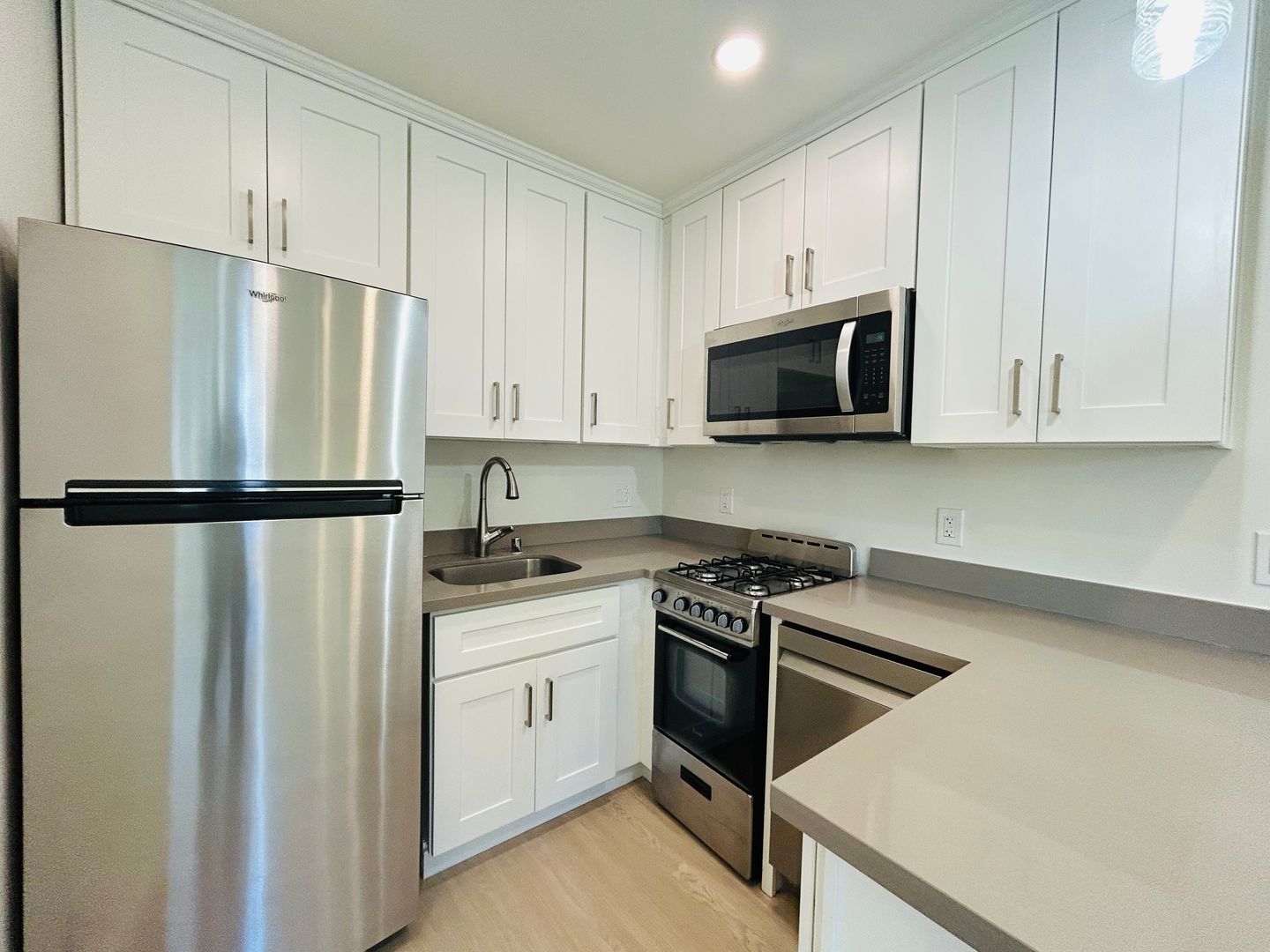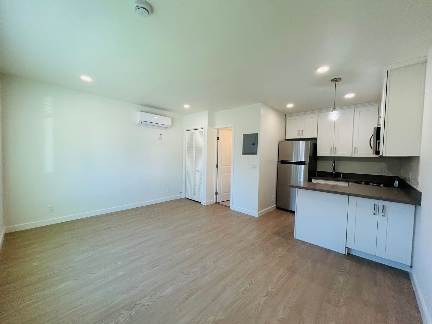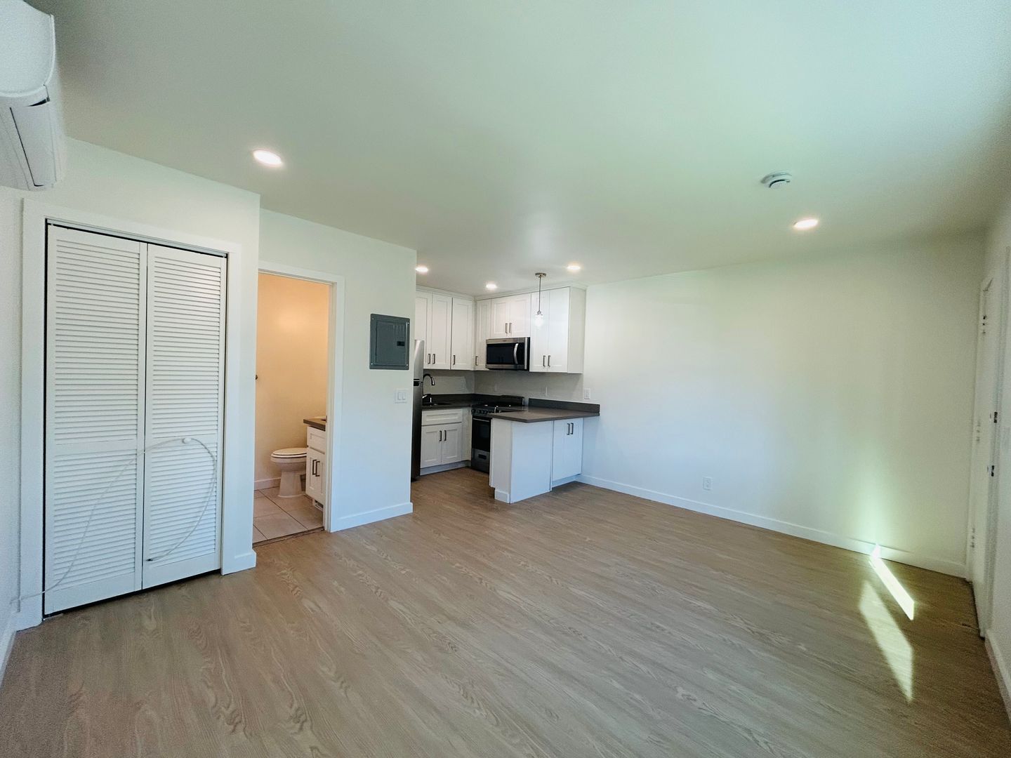 This beautifully remodeled studio apartment has been renovated with brand new wood-style vinyl plank flooring and also features air conditioning, recessed lighting, upgraded bathroom tiles, and a fully equipped kitchen complete with stainless steel dishwasher. You will enjoy its natural sunlight in both the kitchen and living area.