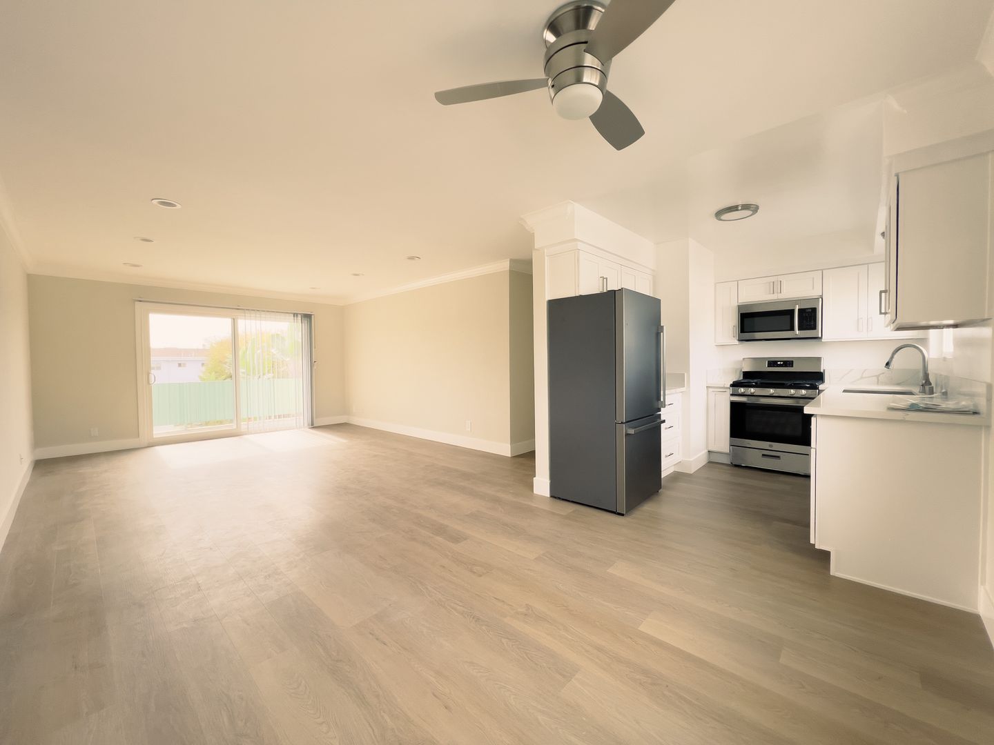 The apartment home of your dreams is waiting for you here in Palms! Don't miss out on this brand new, fully renovated, large top-floor two-bedroom two-bathroom apartment home! This apartment features central air conditioning and heating, a private balcony, wood-style vinyl plank flooring, stainless steel appliances, a ceiling fan in the dining room area, USB/USB-C Outlets, and Keyless Entry. Enjoy natural sunlight and poolside views right from the comfort of your own home!