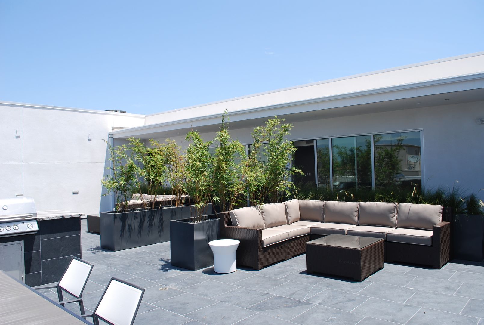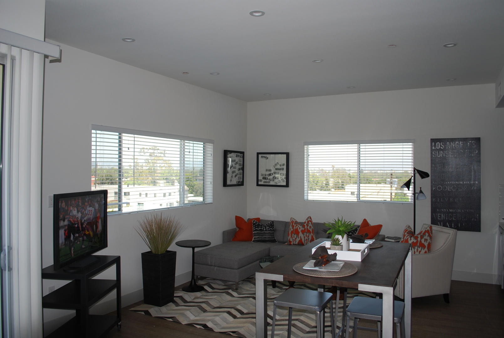 The building features a fantastic recreation room and rooftop deck! The Rec Room has two large smart televisions, comfortable seating areas, and a ping pong table. The room is perfect for hosting small gatherings or meetings.