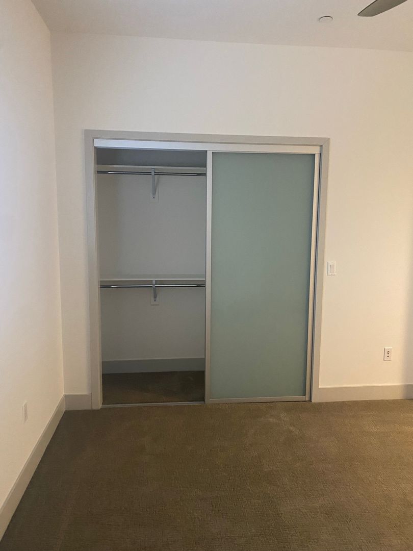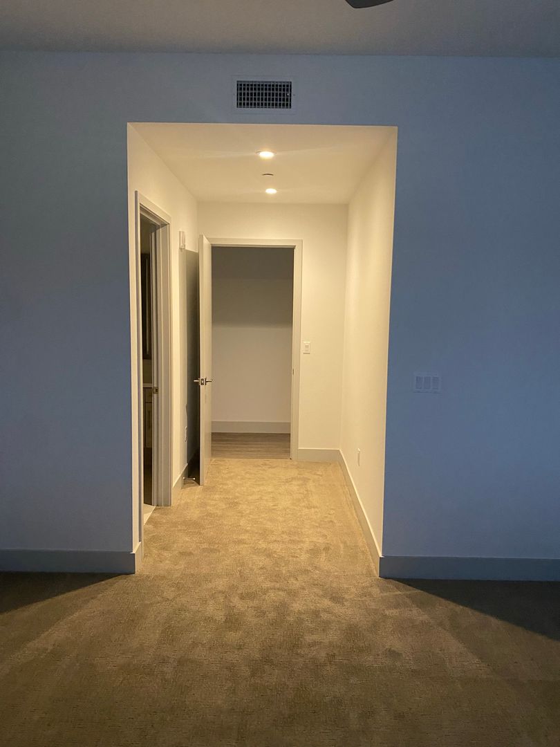 Come by today and view this spacious two-bedroom corner unit that features dual master suites, high ceilings, wood-style laminate flooring, and a modern kitchen with stainless steel appliances, quartz countertops, ample kitchen cabinet storage, and central heating and air conditioning.